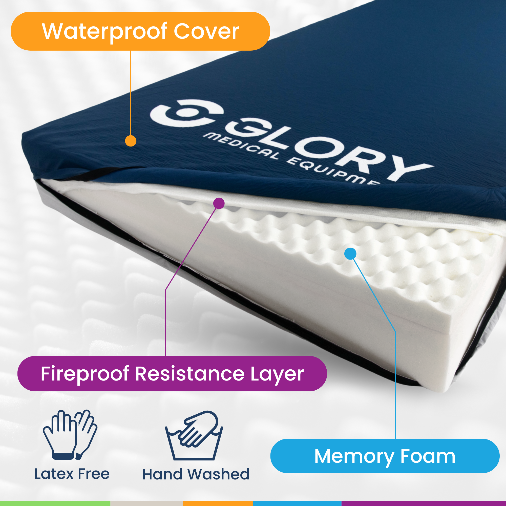 Glory Medical (GM-59) Premium Hospital Bed Mattress – 5.9” Waterproof & Fireproof Foam with Premium Cover Waffle Surface, 2” Memory Foam + 4” High-Density Sponge Latex-Free, Premium USA Quality
