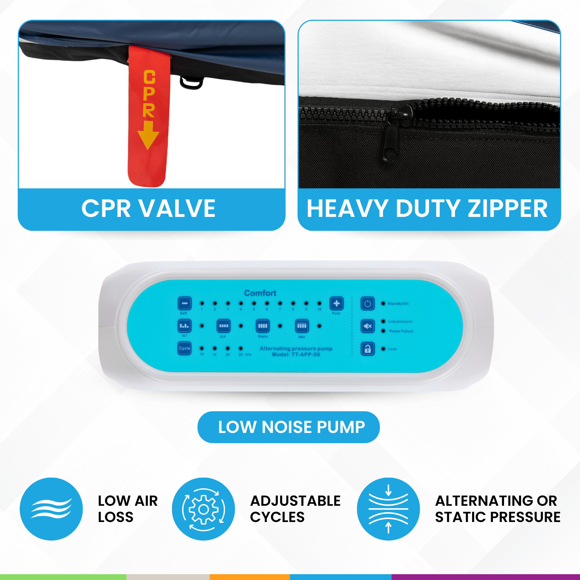 Glory Medical (MA-9T) Low Air Loss Alternating Pressure Mattress – 3 Layers, 20 Air Chambers with Alternating Inflation/Deflation | Waterproof, Breathable, Quiet Pump, CPR Valve & Carry Bag